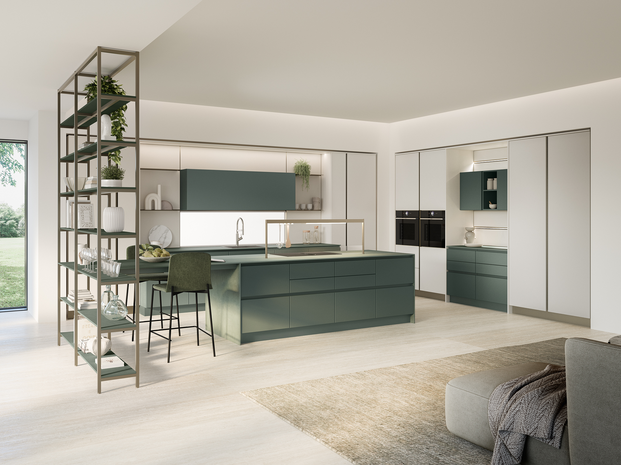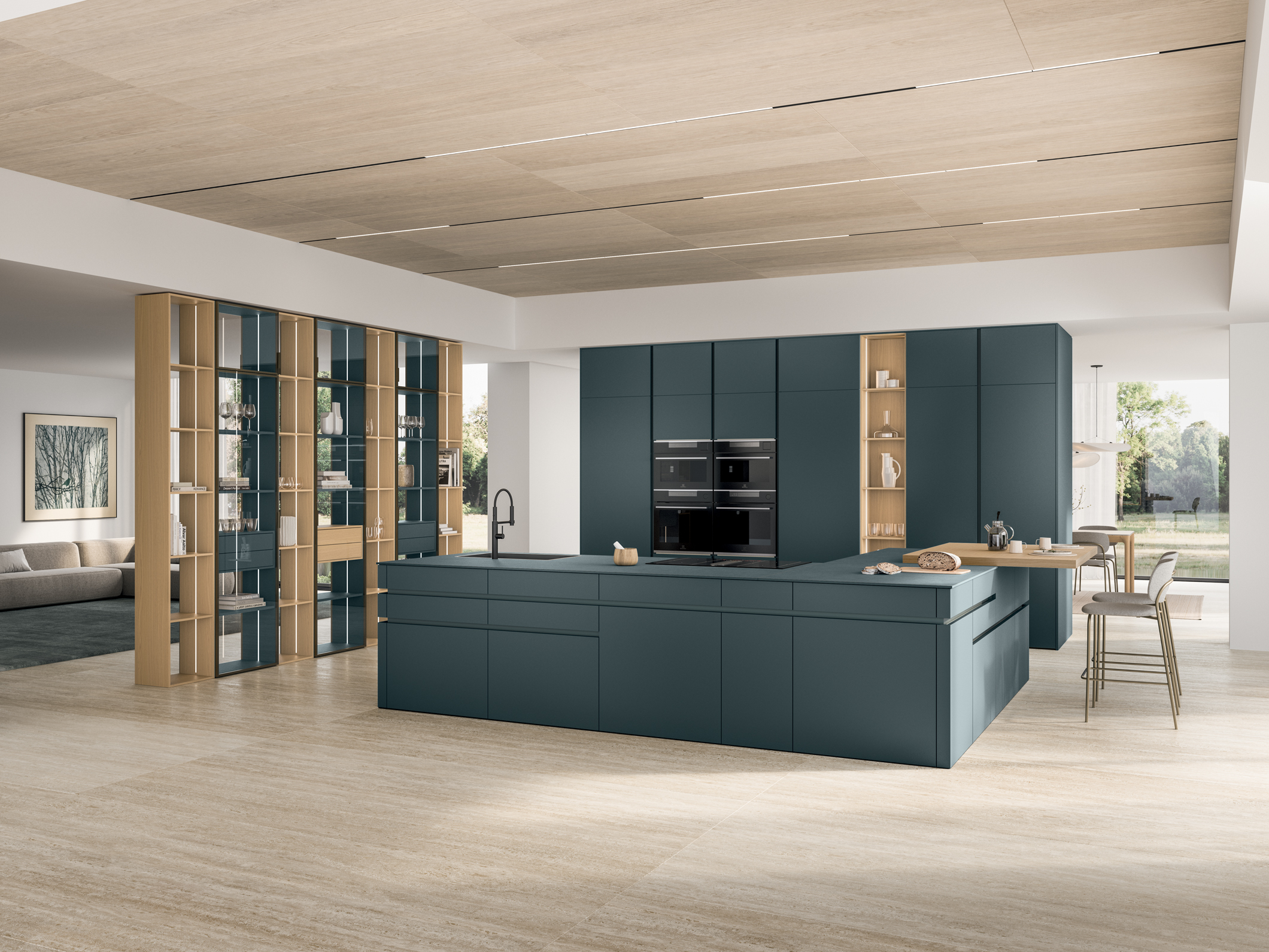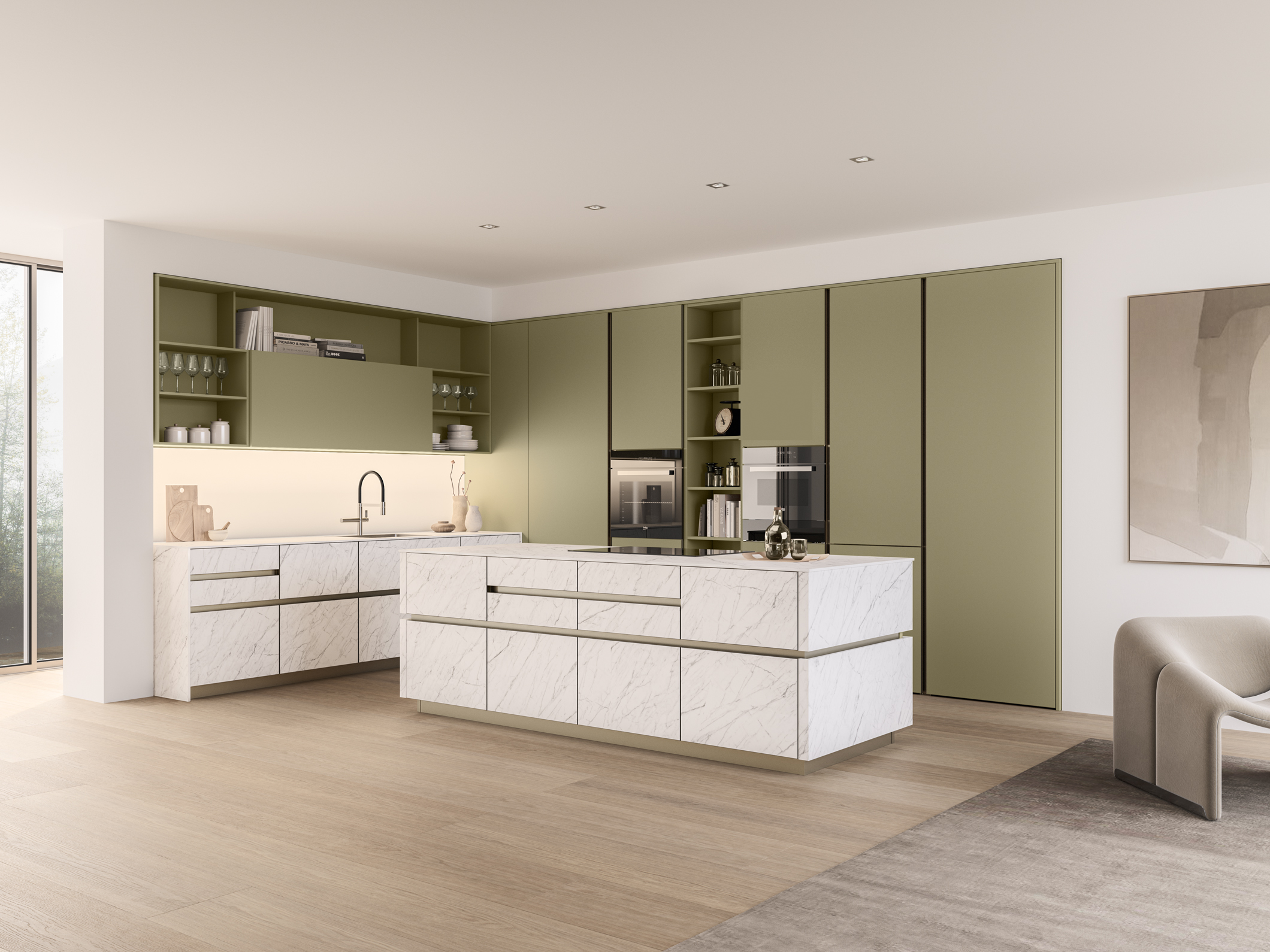 L’unicità di un progetto deriva anche dai piccoli dettagli, come la peculiare sagomatura a taglio delle ante capace di donare all’ambiente cucina uno stile caratteristico e deciso