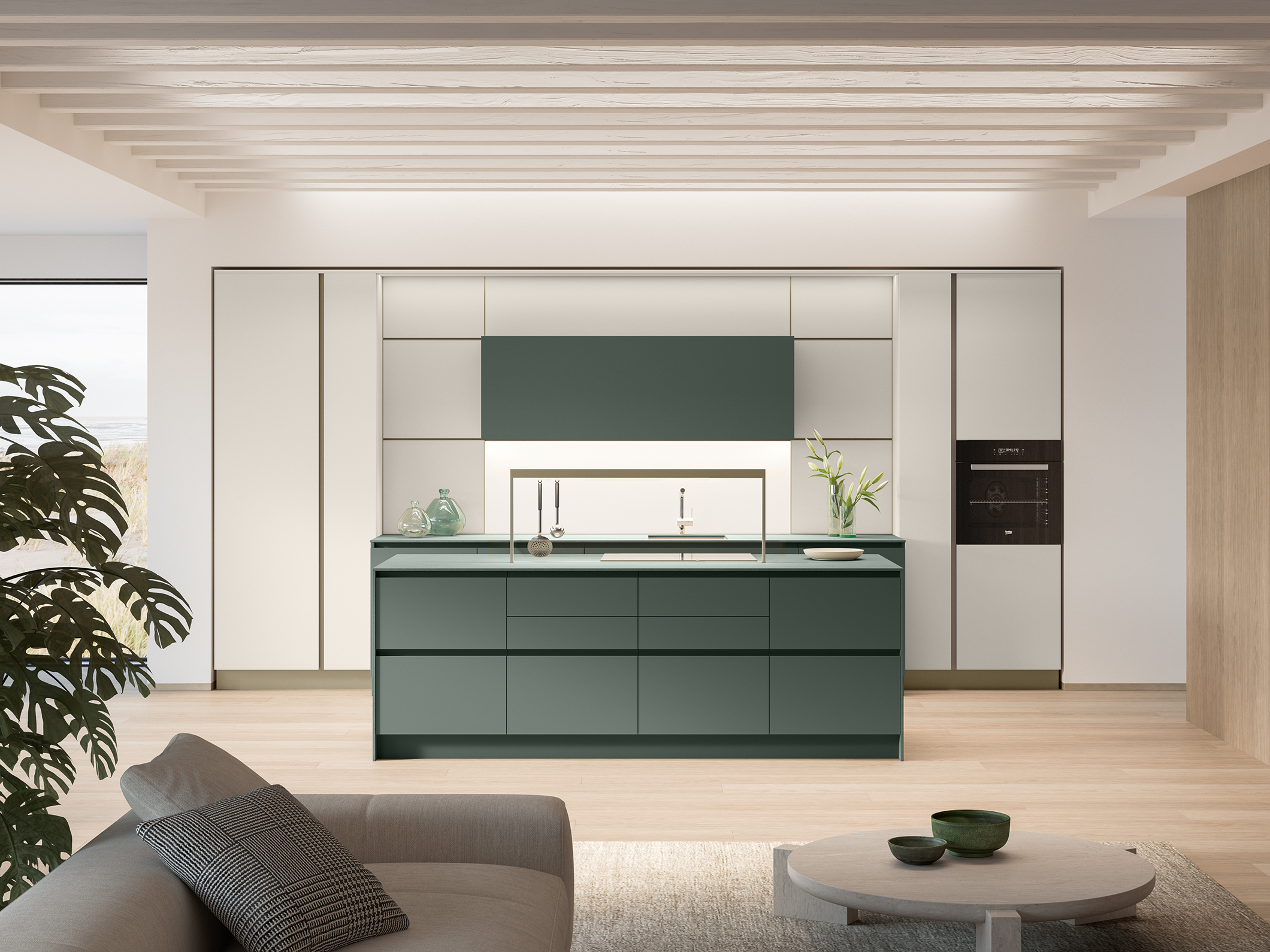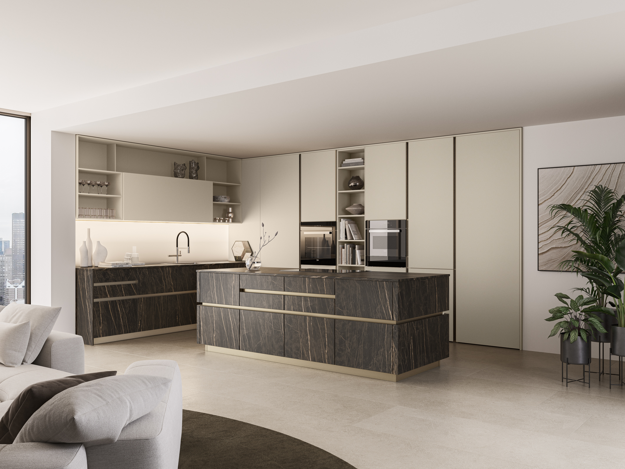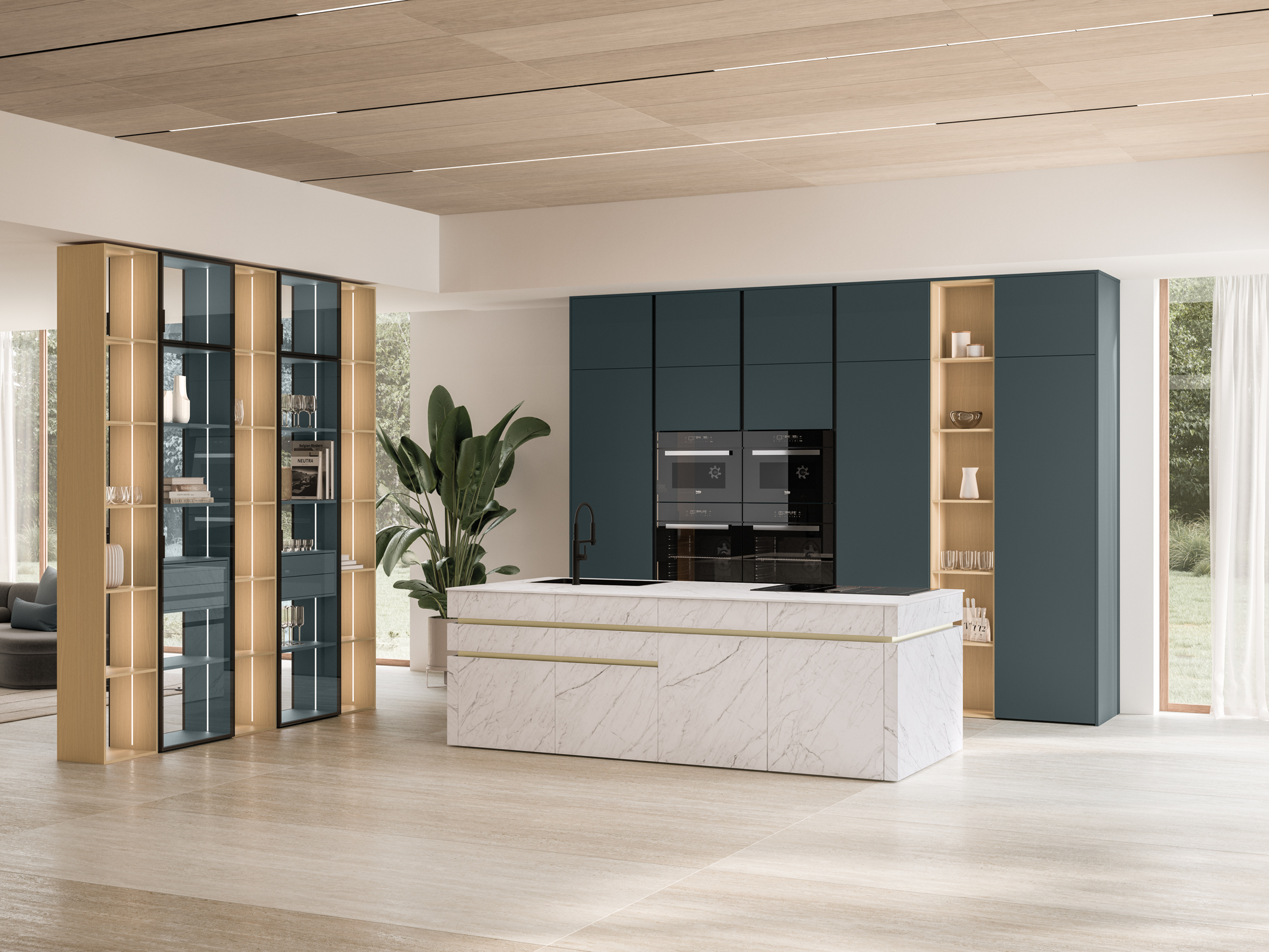 L’unicità di un progetto deriva anche dai piccoli dettagli, come la peculiare sagomatura a taglio delle ante capace di donare all’ambiente cucina uno stile caratteristico e deciso